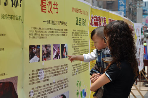 5月31日,由國內(nèi)知名民間公益團(tuán)體-寶貝回家志愿者協(xié)會與新?lián)釁^(qū)婦幼保健站、市公安局巡特警支隊、西三街電腦城、英特企業(yè)在線等單位聯(lián)合舉辦的“關(guān)注流浪兒童,幫助寶貝回家!”大型公益活動在西四路步行街舉行。參加活動的志愿人員通過展板、發(fā)放宣傳單等形式向過往行人宣傳了打擊拐賣婦女兒童的有關(guān)知識和未成年兒童自我保護(hù)注意事項;同時也提請居民在出行中遇到兒童乞討及發(fā)現(xiàn)有意虐待兒童行為及時向公安機關(guān)報案。記者在采訪中了解到,近年來,兒童失蹤案件屢有發(fā)生,大多被拐賣兒童成為了行乞人員的贏利工具,為了騙取同情,甚至有意傷害兒童肢體造成殘疾,對兒童父母造成極大傷害,產(chǎn)生惡劣的社會影響。志愿者號召大家行動起來,配合公安機關(guān)及婦聯(lián)、民政等部門,堅決打擊拐賣兒童犯罪,動員全社會力量,幫助丟失的孩子找到自己的爸爸媽媽。志愿者高瑞杰對記者說:“一個人的力量雖然小,但是大家團(tuán)結(jié)起來,自覺關(guān)注流浪兒童,選擇適當(dāng)?shù)霓k法去幫助這些孩子,就會讓犯罪分子沒有利益可圖,最終無法繼續(xù)進(jìn)行犯罪活動。”